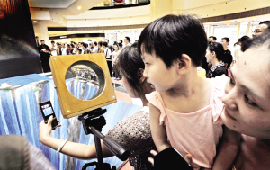 “简直是惟妙惟肖,看画的瞬间就像真的到了武隆!”市民拿出手中的相机、DV或手机记录下来,有市民更是“站在”瀑帘中冒出来的石块上,表情惊愕,颇有一番惊心动魄之感。