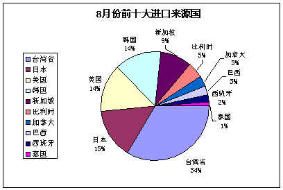 对比7-8月份前十大进口来源国情况来看,台湾货源牢固占据“一哥”低位,从数量上来看,7、8月份均保持在1.31万吨/月的水平。日本货进口量减少5个百分点,美国、韩国货进口量分别增加3和2个百分点,新加坡货进口量基本稳定。从数据来看,台湾货源近两月基本维持稳定的供货状态,由于供应商方面6-8月份每月均保持超卖状态,因此,预计9-10月份台湾货源进口量仍将维持在较高水平。日本货源进口量有所减少,其数量的减少基本由韩国、美国货源的增量所弥补。因此,三季度末四季度初,台湾货源仍将是进口量的主力军,总体而言,供应层面压力不小。